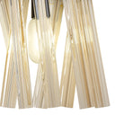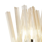 The Syrah collection presents an intriguing glass shape moulded into a three dimensional triquetra. The grooves along each sized glass create an appealing optical effect which is effortlessly enhanced with the use of tubular lamps. The wide variety of fixtures available in this range span from a 6 light semi flush to an impacting 32 light pendant. The complementing wall lamps available allow for further application built around the same lighting family. Each frame can be chosen with either a brown oxide, polished nickel or matt black frame with either clear, champagne gold or smoke glass.