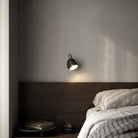 Angle wall light by Danish designer Maria Berntsen is a modern and timeless design that fits perfectly as a bedside light or above the bathroom mirror. The lamp is carried out in a playful and interactive design with a magnetically attached shade that can easily be adjusted to fit your needs. Turn, tilt or move the shade for a directional or indirect light. A USB charging port on the side conveniently lets you charge your phone or other device.