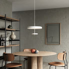 Danish designer Maria Berntsen has created the classic, yet unique Mobile pendant in a slim and elegant design. The two rounded shades and discreet brass detail give the pendant a modern and light look that is perfect above the dining table. Light reflects from the bottom shade onto the opalized top shade releasing a beautiful, diffused and glare-free light. You can easily adjust the shades closer together for a centred, downward light or further apart for a more diffused light spreading out in the room.