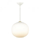 Navone is designed by Danish design studio Studio Mavro//Lefèvre by Sofie Lefèvre. The overall shape of the shade is soft and round, yet the very subtle curved bottom adds a new interesting dimension that transforms the lamp into more than just a sphere. The brass details add a contemporary touch, underlining the suspended lightness of the lamp.