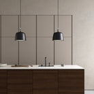 Danish design duo Bjørn + Balle has created Norbi. A minimalist pendant with an industrial touch. The matte shade is contrasted by a brushed steel detail that enables the shade to move up and down. Moving the shade up creates a diffused light that spreads into the room, and moving it further down centres the light downwards - creating the perfect lighting for different situations.