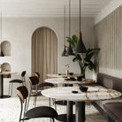 Nordic minimalism and suspended lightness are the keywords for the Nori pendant series by Danish designers Bjørn + Balle. Organic, rounded shapes furnish the design with an unmistakable ease that is complemented by the warmth of oiled, walnut wood on top. It fits easily into a wide range of interior design contexts – creating various looks depending on size and colour.