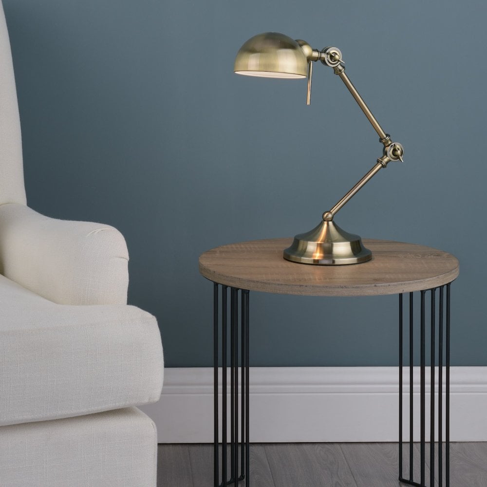 The Genus 1lt Table Lamp is finished in antique brass and is in line rocker switched.