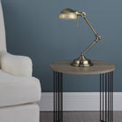 The table lamp has an adjustable head, perfect for reading and crafts.