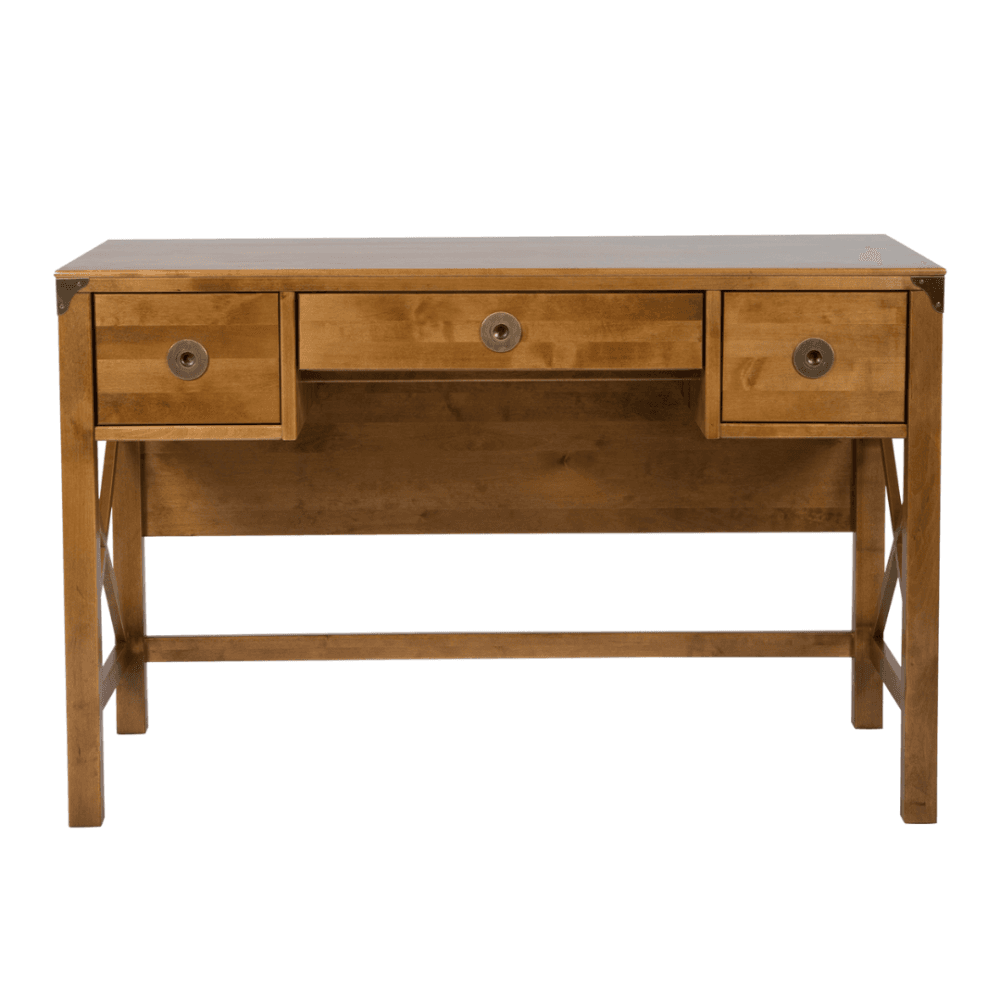 While it may epitomise traditional design, Laura Ashley's Balmoral desk addresses the need of the modern home worker thanks to a central drop front drawer which can accommodate a keyboard. Made from solid birch wood with metal hardware detail, this large desk offers storage space for your documents as well as a generous surface to work and place monitors. Note the cross design on either side of the frame which nods to its robust construction and classic aesthetic.