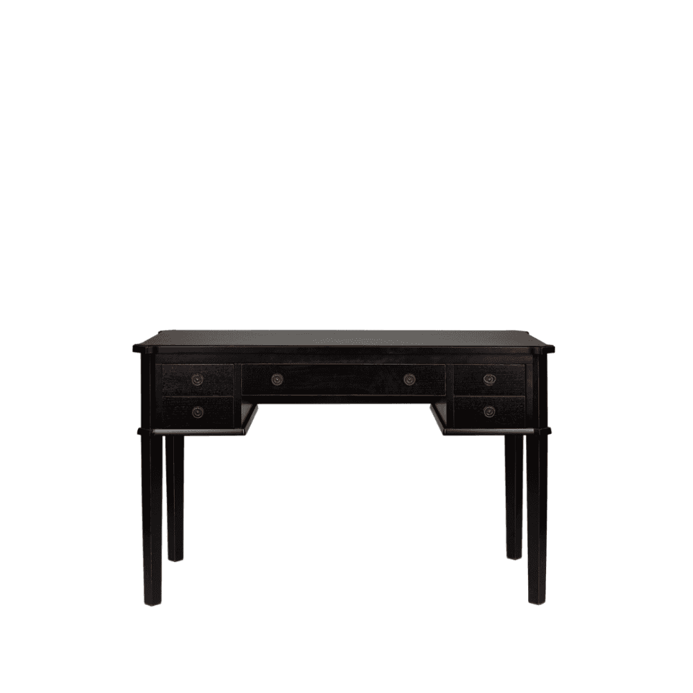 The Laura Ashley Henshaw 5 Drawer Desk is a sophisticated addition that makes an elegant statement in any home study. This desk features four small drawers and one wide drawer, providing ample storage space for documents and stationery. Crafted from a blend of solid wood, veneers, and modern materials, it showcases exquisite craftsmanship. Hand-painted and finished with a clear lacquer, it requires low maintenance while retaining its stunning appearance. Assembly is hassle-free, as only the side panel legs need to be attached, eliminating the need for full assembly. Enhance your home study with this beautiful and practical desk.
