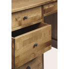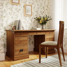 Crafted from predominantly solid birch but with some birch veneer modern materials the Laura Ashley Garrat 7 Drawer Desk would grace any home office. the seven drawers vary in size allowing for storage of all manner of documentation. The unit has a smooth top and is stained to help enhance the natural wood effects and together with brass effect fittings they combine to give a truly authentic look. Only the desk top needs attached to the pedestal bases to begin enjoying this piece; full assembly is not required. Requires two people to lift, Please ensure there is assistance available to meet our driver upon delivery.