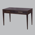 The Thorn Desk exudes warmth and sophistication with its rich chocolate finish, creating an inviting workspace. Intricate brass detailing adds a touch of timeless elegance, elevating the desk's style and providing subtle yet luxurious accents. This desk is a perfect blend of functionality and refined design.