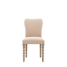 Featuring a fully upholstered seat and beautiful oak legs, these stunning dining chairs will make a classy addition to any dining room. The front legs feature hand-crafted bobbin detail which is created by turning the wood on a lathe, a task carried out by the finest craftsmen. The wood has a very subtle lime wash tone to the finish which is soft and mellow, and looks beautiful paired with biscuit coloured fabric for the upholstered seat. Matching pieces are available.