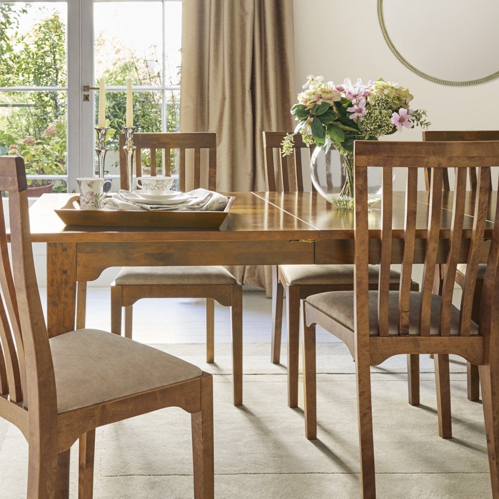 Crafted from predominantly solid birch the Laura Ashley Garrat Pair Of Dining Chairs feature a gracefully shaped back for extra comfort and a generously upholstered seat. The chairs are stained to enhance the natural wood effects.