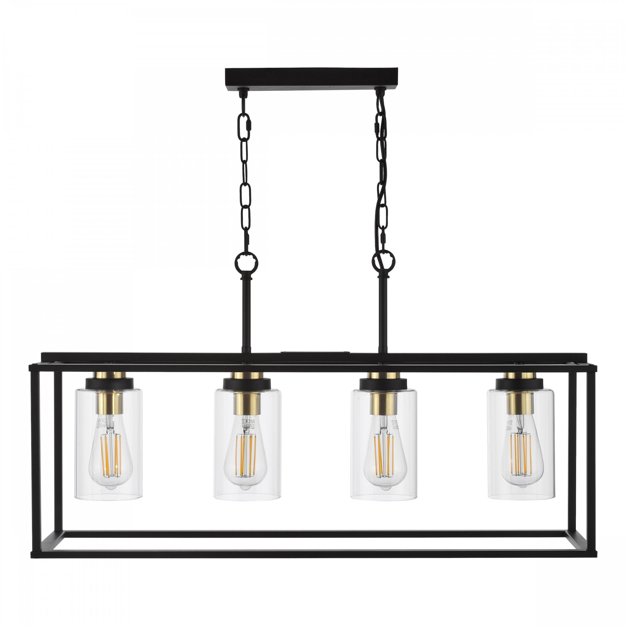 Illuminate your kitchen island with industrial flair using the Abel 4 light bar pendant from Dar Lighting. This striking fixture marries satin black metal with clear glass cylindrical shades, accented by antique brass details for a touch of warmth. The modern industrial design of this bar pendant makes a bold statement in any space, while its chain suspension system allows for flexible hanging heights. For an extra dose of vintage charm, pair it with our selection of Edison-style bulbs. Whether you're after kitchen lighting with an edge or simply fancy adding some industrial chic to your home, this versatile pendant is sure to cast your space in a whole new light.