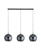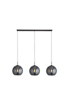 The Amsterdam 3 light bar pendant features a matt black finish and large smoked glass rounded shades with an open base. The bar pendant allows you to adjust the height to suit your needs and is also dimmable. This would be a great addition in a kitchen or dining room space in a modern home.