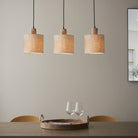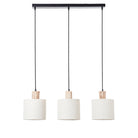 Scandi inspired linear pendant ideal for using above a breakfast bar or table. Natural wood and natural linen shade creates a cosy glow.
