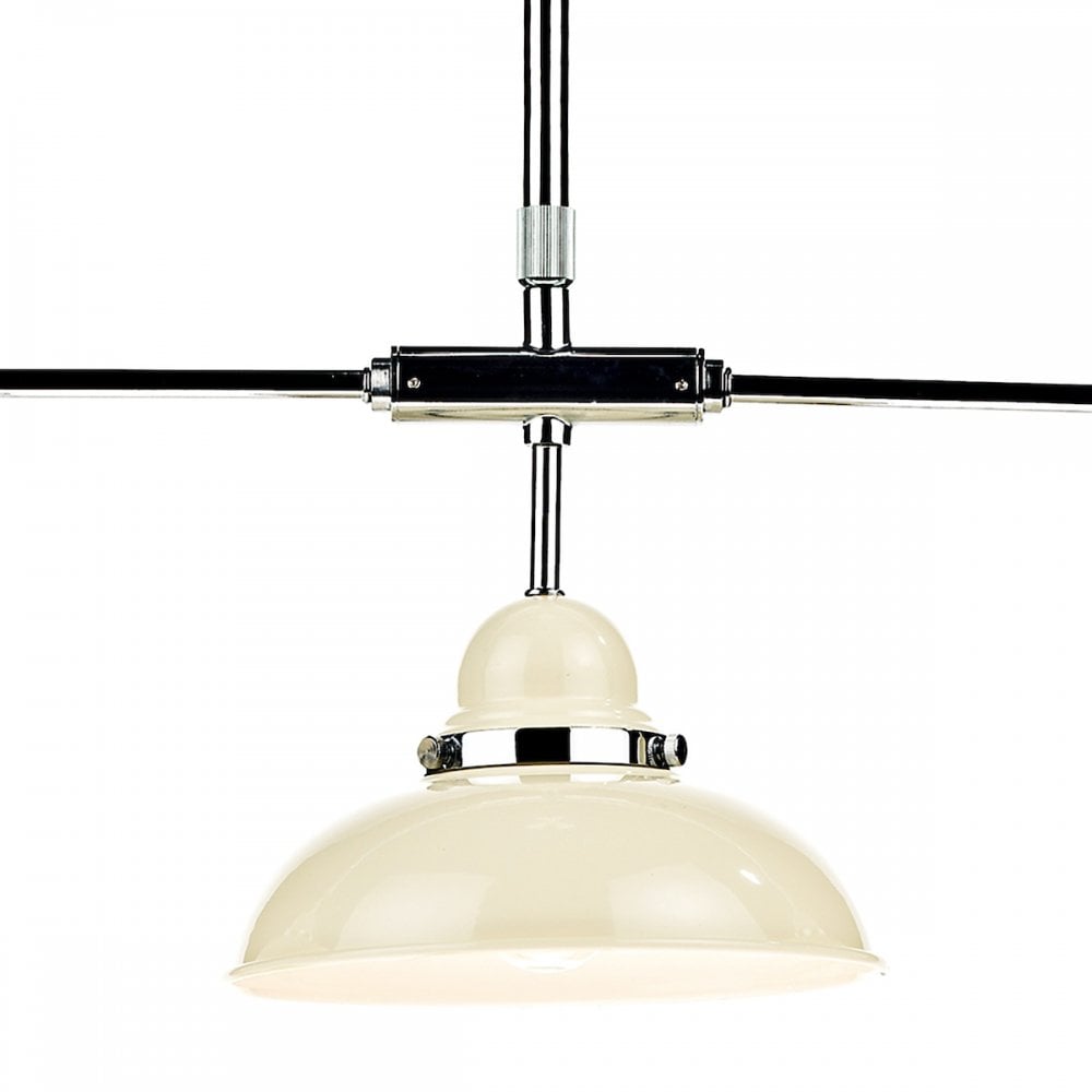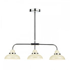 The DYNAMO 3lt Pendant features a polished chrome ceiling plate and a metal retro-styled shades in cream.