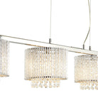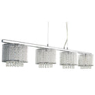 This Elise 7094-4CC 4 light large ceiling bar will add instant style to a contemporary dining room and is ideal when used above a table. Aluminium trims surround each of the 4 lights, with an extra decorative touch of clear crystal drops complemented by the chrome finish. The striking item looks fantastic when lit; with the light creating a warming glow against the intricate detail.
