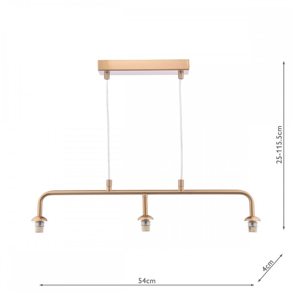 The Feya 3 Light Bar Antique Bronze Frame Only from dar lighting is a simple yet stylish bar pendant that works great over kitchen islands or dining tables. Shown here without glass, use our configurator to choose from a large range of combinations. The Feya 3 light bar pendant features a simple frame with a luxurious antique bronze finish allowing the shades to really shine. The height is adjustable on installation, allowing you to set it at the perfect height.