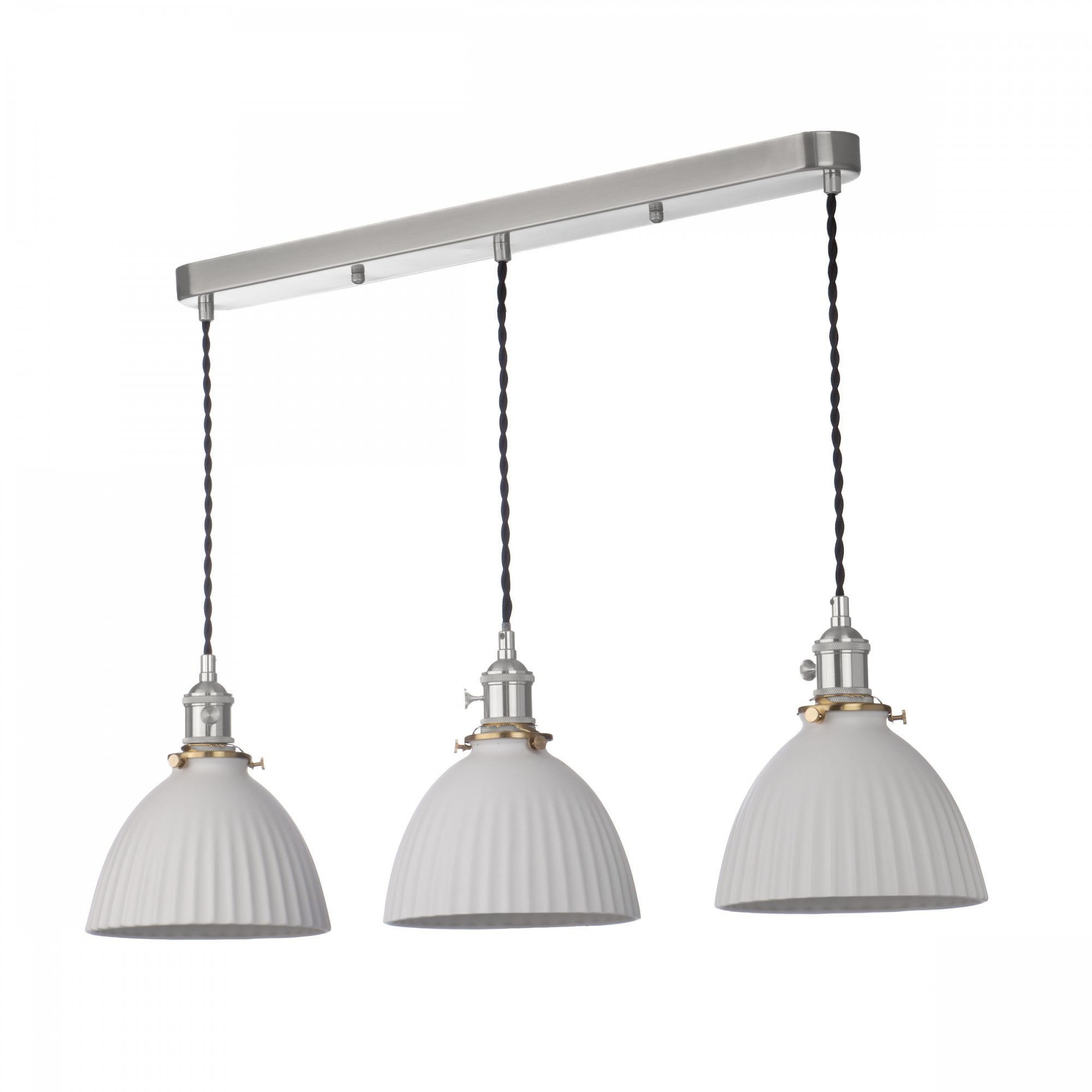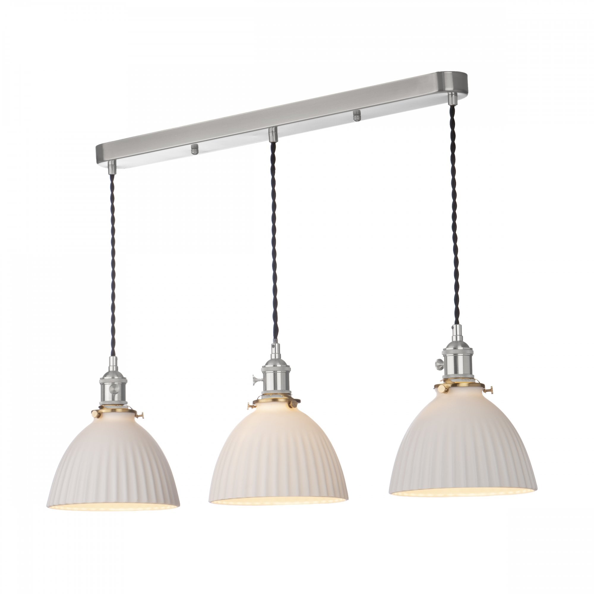 Hadano 3 Light Bar Pendant Antique Chrome & Ceramic Domed Shade
