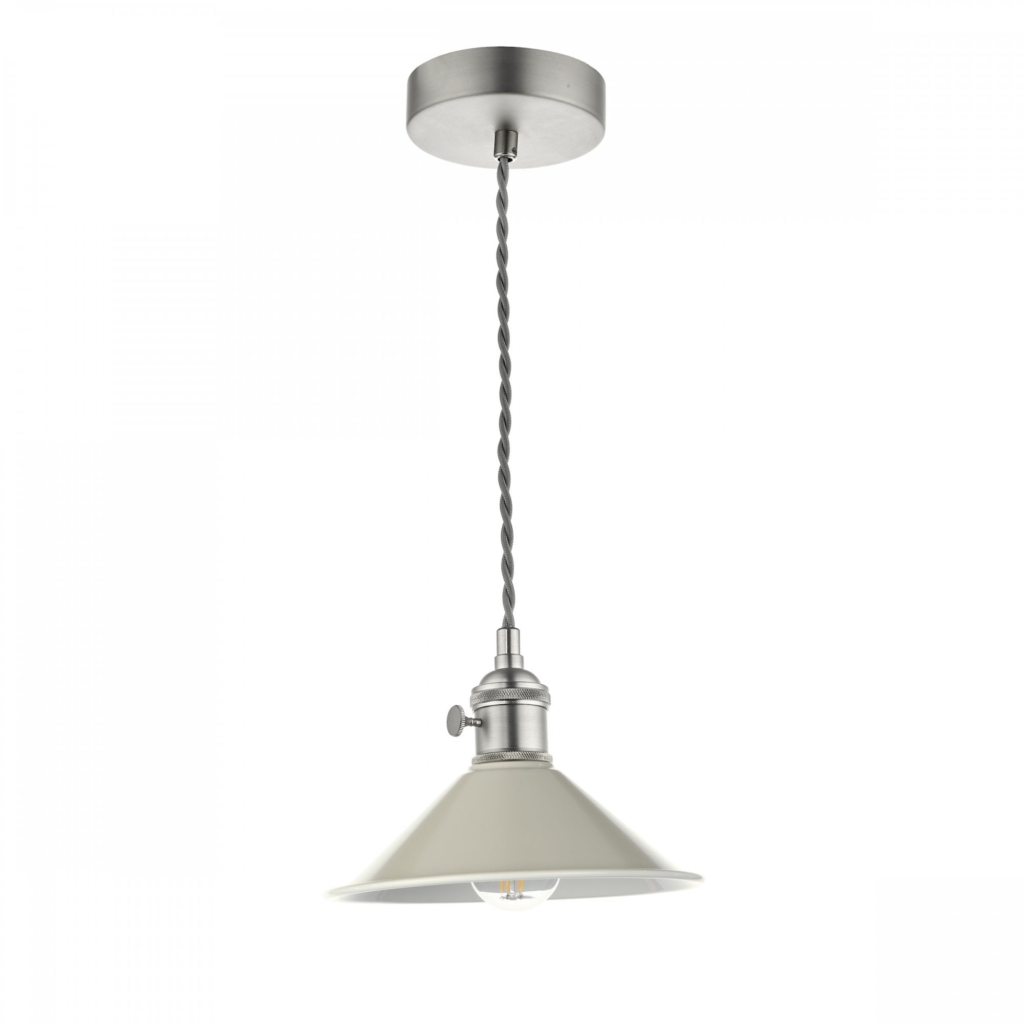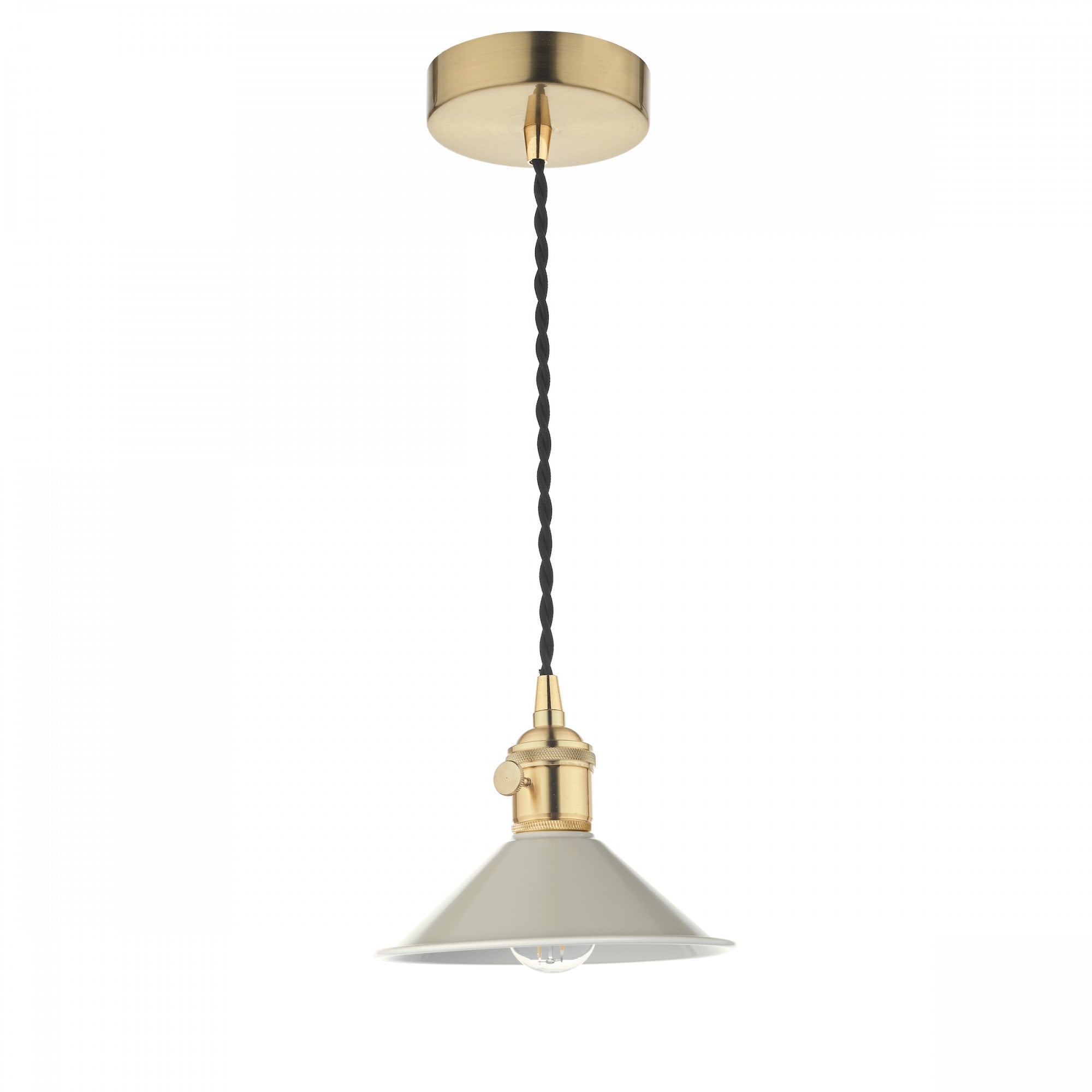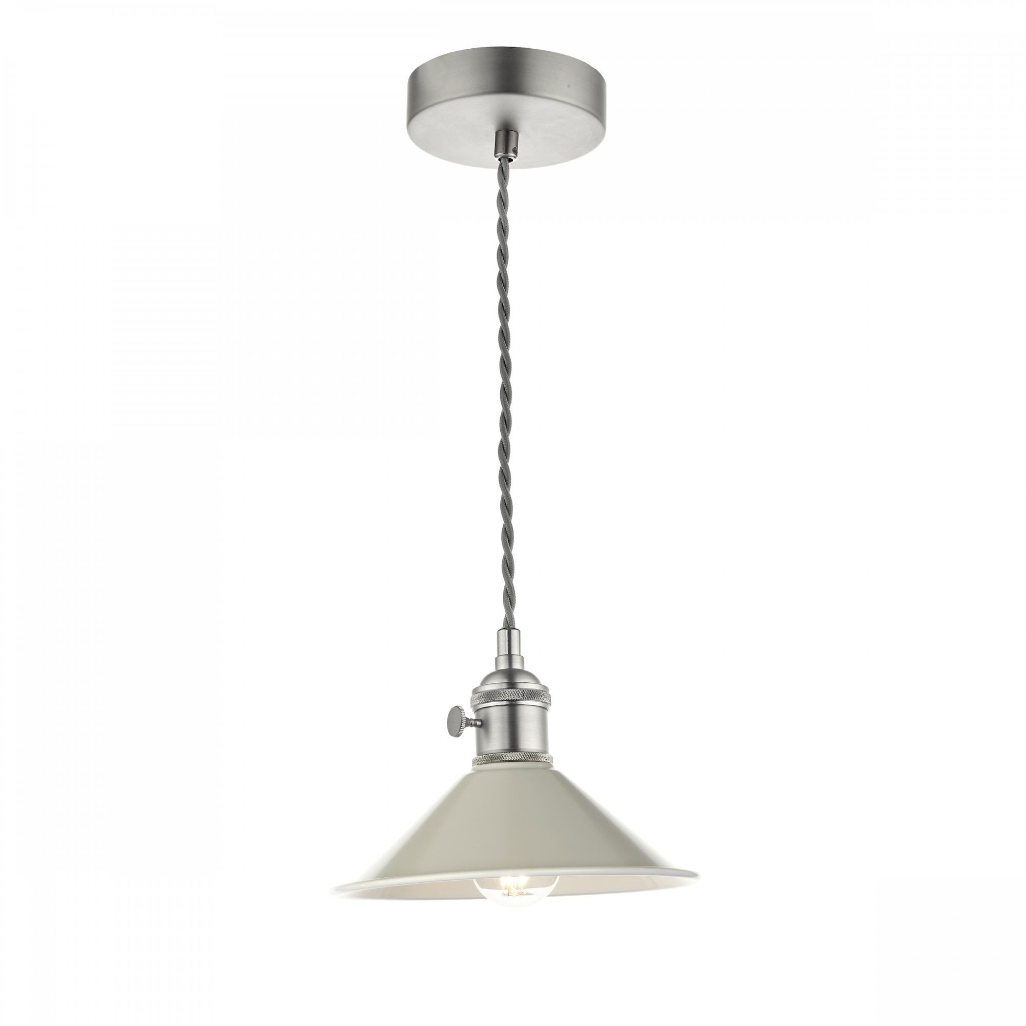 This all-metal version has a vintage-look cone shade in an earthy olive green finish and white inner, complemented by a sophisticated antique chrome finish ceiling rose and machined lamp holder.