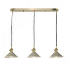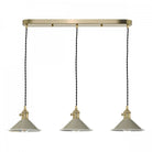 This all-metal version has a vintage-look cone shade in a soft cashmere finish and white inner, complemented by a sophisticated natural brass finish ceiling rose and machined lamp holder.