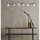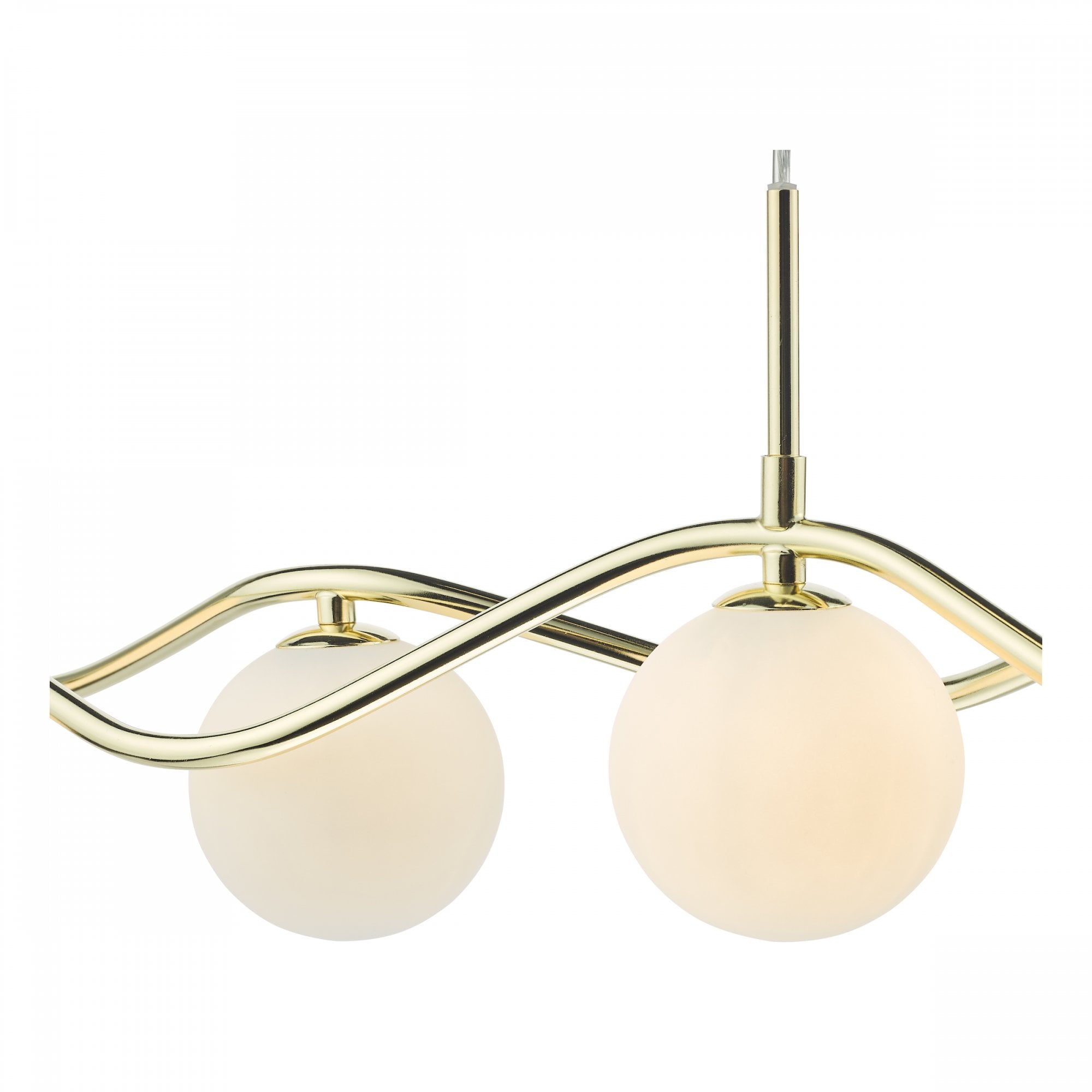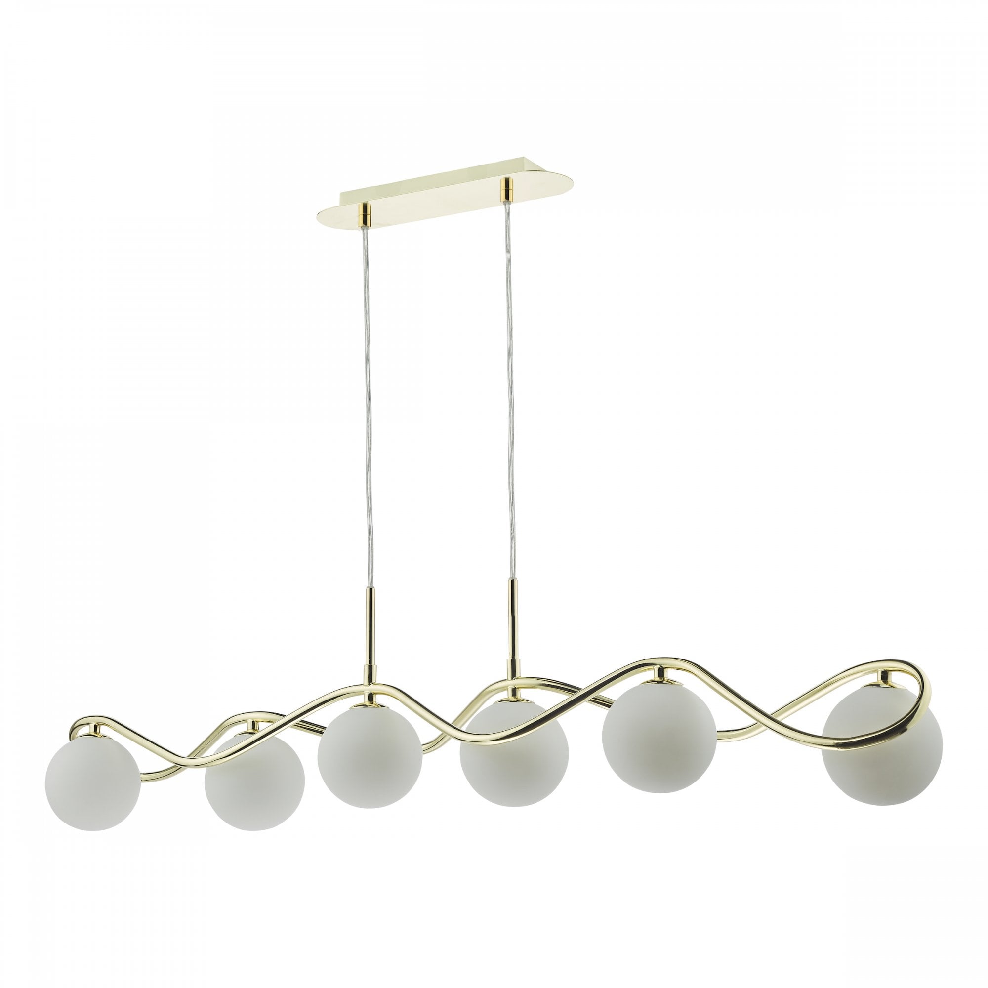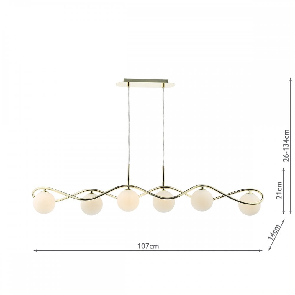 The Lysandra 6 Light Bar Pendant polished gold and opal glass gives a refined industrial edge to your space with its fluid curves and opal glass shades. The Lysandra bar pendant features a clear cable with a polished gold finish allowing the shades to really shine. The Lysandra bar pendant features an adjustable height on installation, allowing you to adjust the height to your preference. The Lysandra bar pendant takes 6 G9 bulbs (not supplied), We recommend using LED filament lamps from our range of LED bulbs.