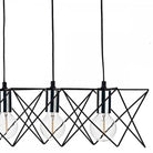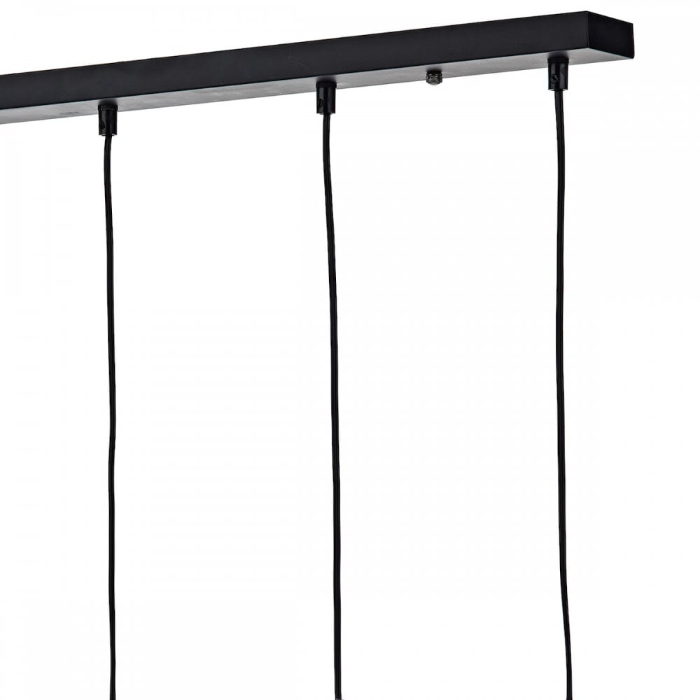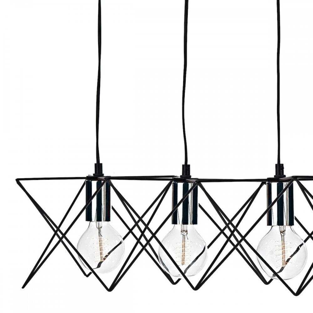 MIDI is a generous (93cm long) over-table bar pendant in a matte black finish with polished chrome lamp holder detail. Perfect for displaying decorative lightbulbs, the open metal work frame adds ambience to vintage and modern interiors alike. Height adjustable on installation to a maximum of 1.3 meters. Pictured with our LED globe lamps (sold separately).