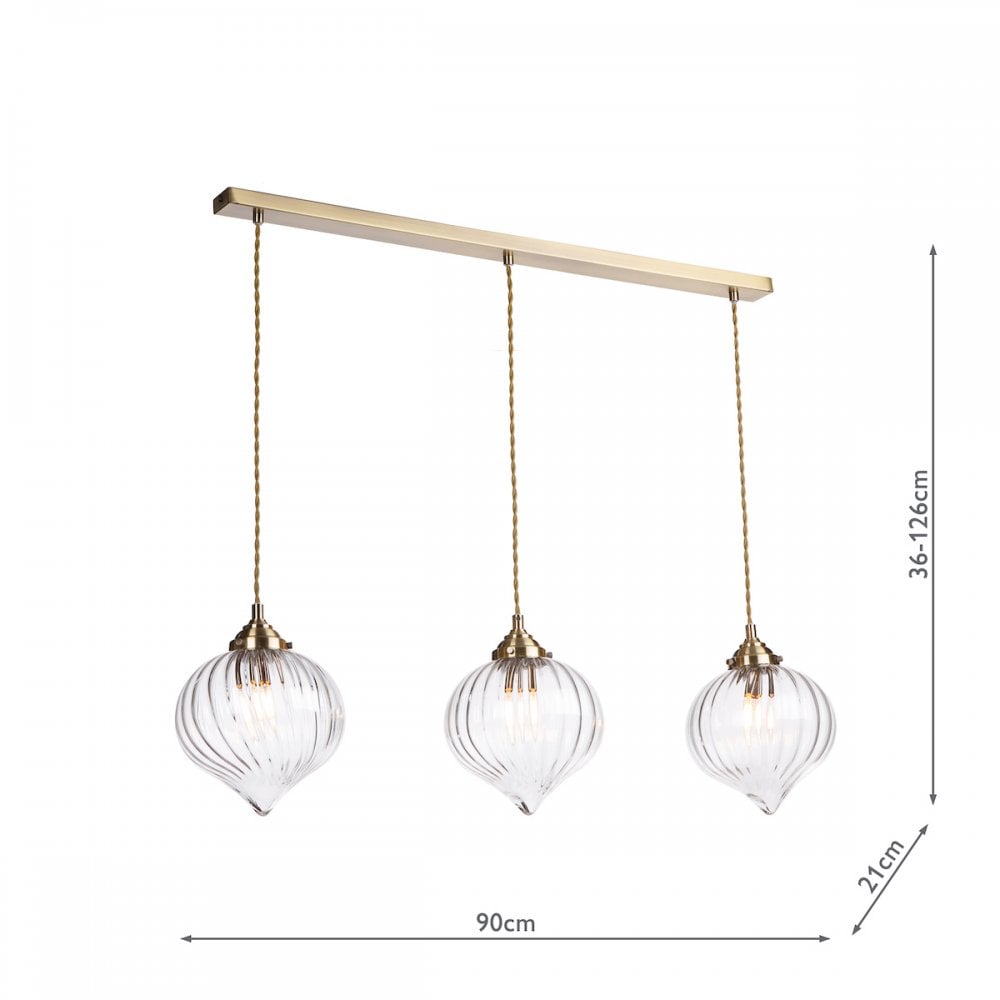 Mya 3 Light Bar Pendant Antique Brass and Glass