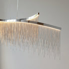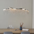 The Orphelia collection of pendants all feature a stunning waterfall of fine silver chains that give off a diffused light effect and a polished chrome finish. The height is adjustable with a 1.5 metre clear flex and is integrated with 31w LED 758 lumens 3000k warm white.
