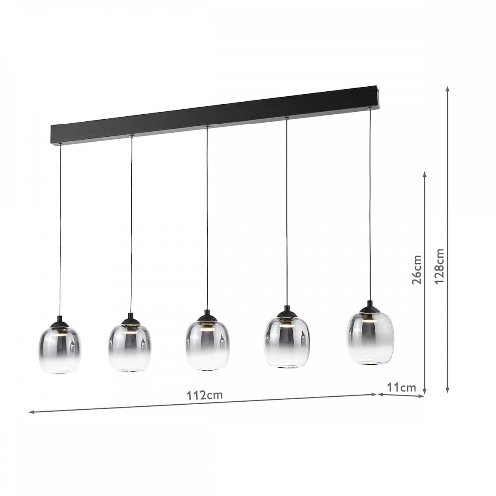 Ramona Matt Black & Smoked Ombre Glass LED 5 Light Bar Pendant