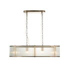 Timeless classic linear pendant with antique brass plated metalwork, the clear ribbed glass panels shade and diffuse the light. Height adjustable chain means this can be perfectly placed to illuminate dining rooms and living spaces. Matching flush and pendant lights also available to create a co-ordinated look.