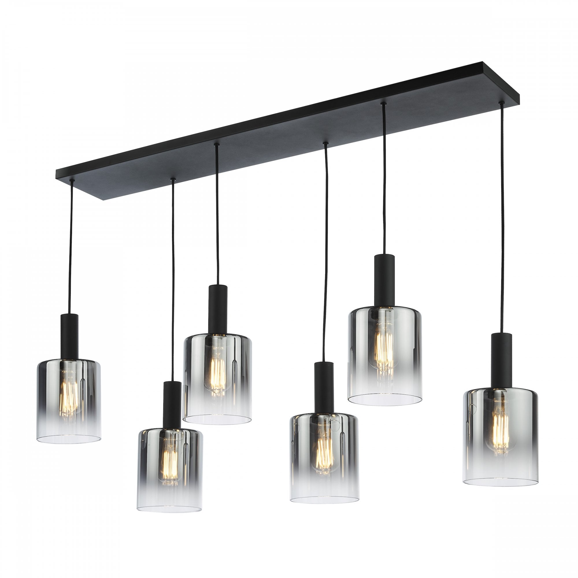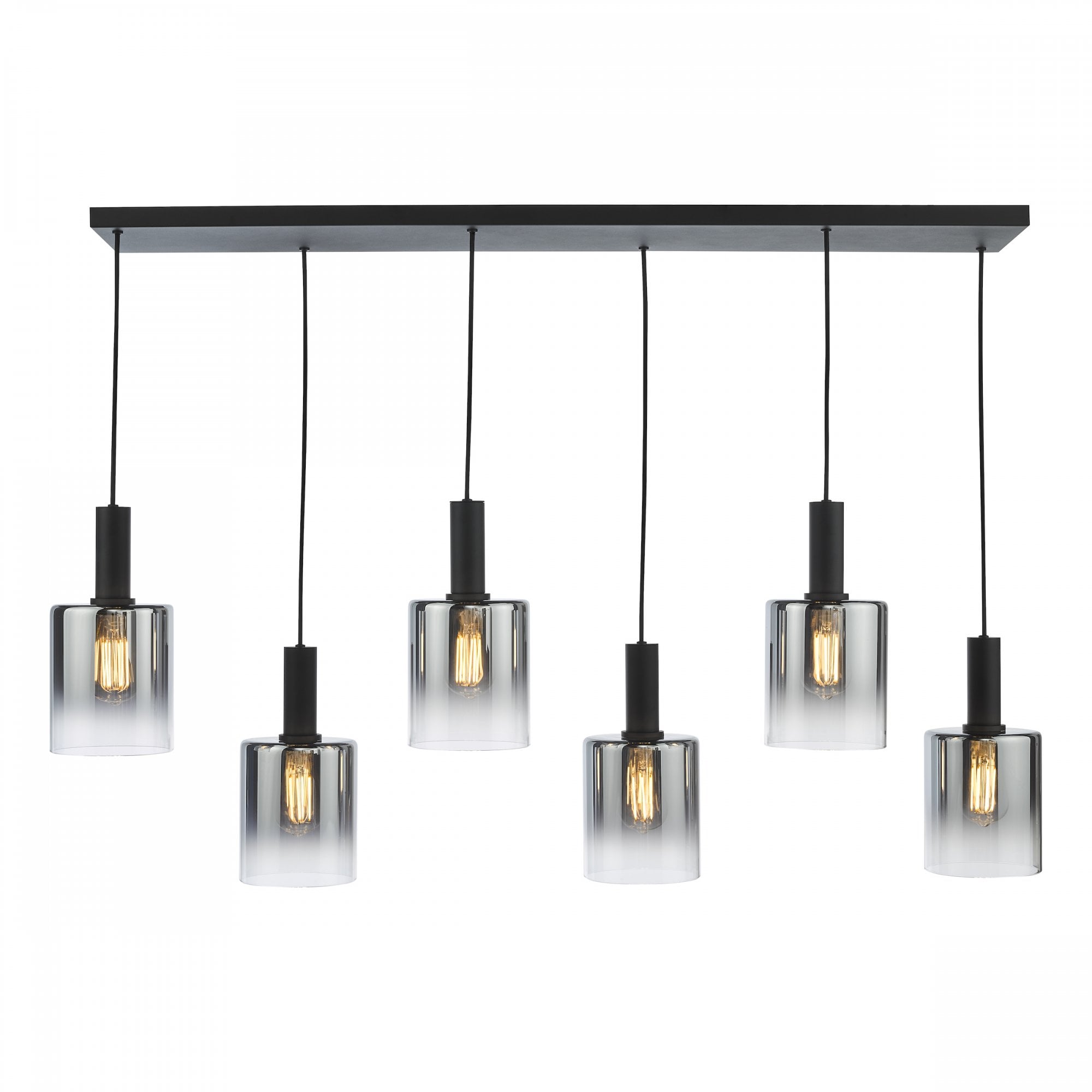 Savannah 6 Light Bar Pendant Matt Black and Smoked Glass