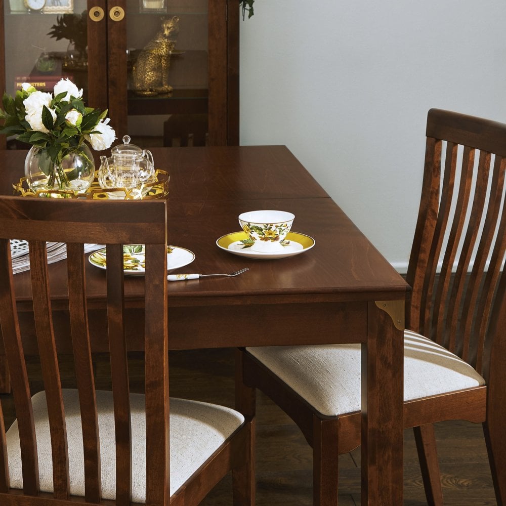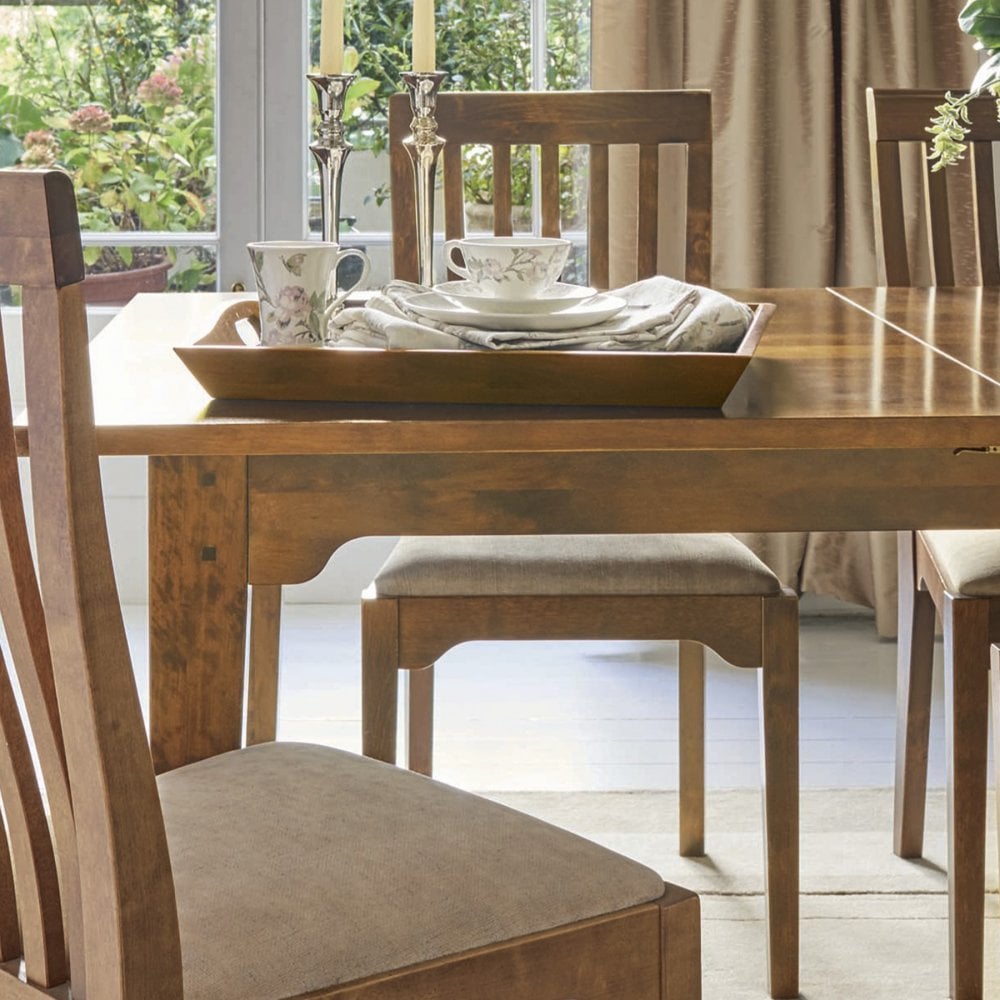 The Laura Ashley Balmoral extending dining table is well proportioned and suitable for seating 6-8 people (160-210cm). The table is crafted from a mix of solid birch as well as veneered birch elements and is lacquered for a low maintenance finish. Only the legs need to be attached to begin enjoying this piece; full assembly is not required.