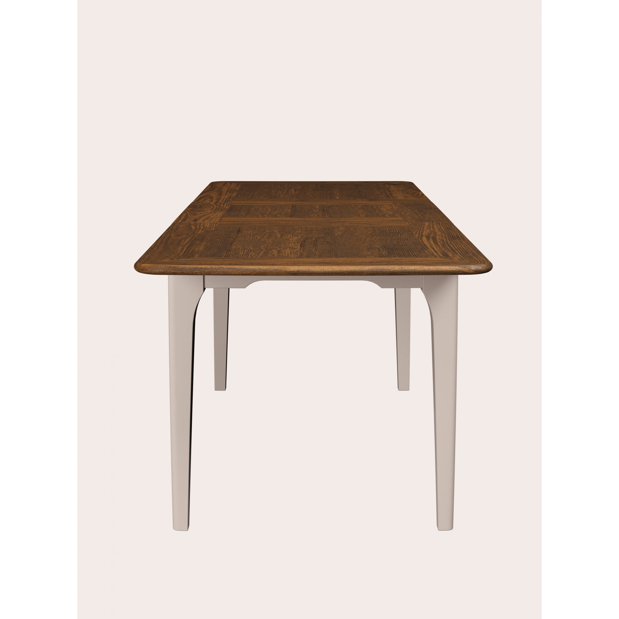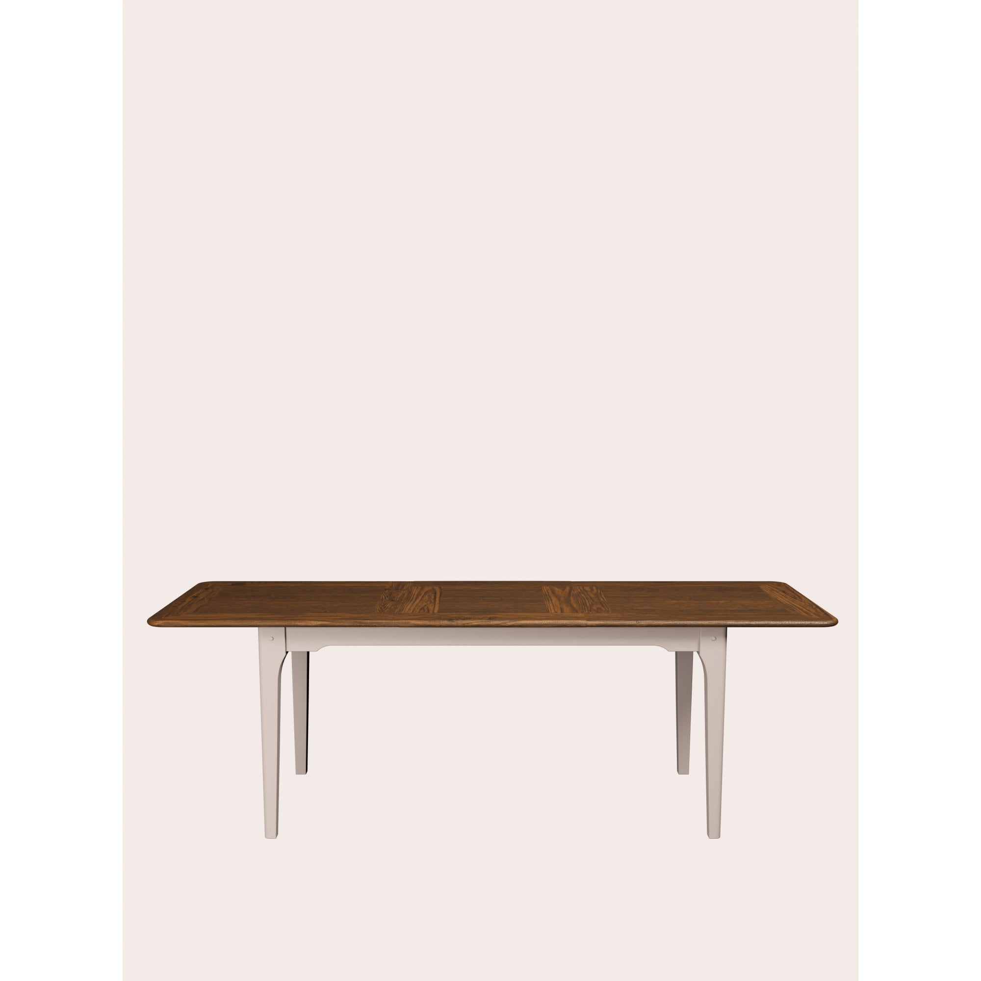 Expertly crafted from solid poplar, the table-top features a blend of reclaimed solid pine and new pine veneer, creating a beautiful contrast. Finished in Laura Ashley Soft Truffle with a rich dark chestnut top, this table exudes warmth and character.