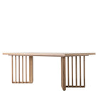 This dining table features solid oak slatted legs in a chevron layout, to create an eye-catching and unusual design feature.