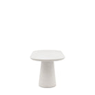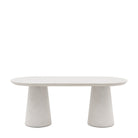 This table is a striking piece of furniture that combines modern design with raw materials. Its sleek, oval tabletop is crafted from durable concrete, while the two sturdy pedestal legs provide a solid base. This unique combination of materials creates a contemporary and industrial look that is perfect for both indoor and outdoor dining spaces.