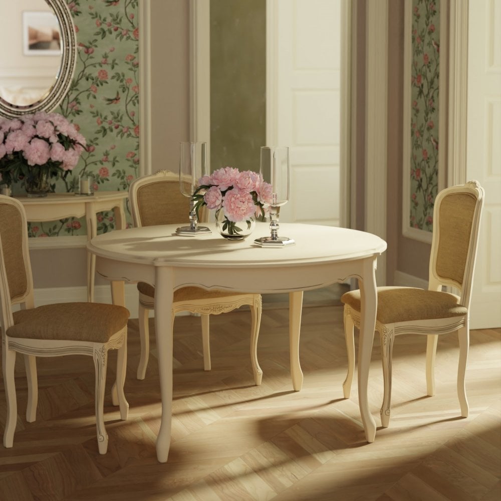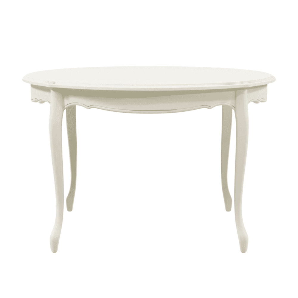 The Laura Ashley Provencale Round Dining Table exemplifies the beautiful proportions and intricate detailing of Rococo French furniture and is sure to make a statement with its elaborately sculpted legs and shaped aprons. The top is made from oak solids and veneers with a slightly weathered finish. All other surfaces are finished with a durable yet unassuming paint and a delicately applied patina to selected edges and profiles. The table will comfortably seat four in a formal setting and six in a casual one. Only the legs need to be attached to begin enjoying this piece; full assembly is not required.