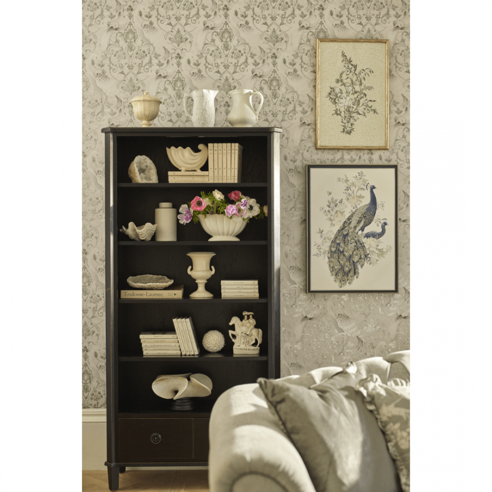 The Laura Ashley Henshaw two drawer single bookcase adds a touch of drama to any decor, making an imposing statement in any interior. Crafted from solid wood with modern materials, it is hand-painted and finished with a clear lacquer, ensuring low maintenance. The antiqued effect fittings add to its overall look. This bookcase features six adjustable shelves and two fixed shelves, along with two spacious drawers. With subtle distressing on its edges, it showcases a gently aged effect, completing its appeal and making it the perfect piece for an empty alcove. Enjoying this bookcase is hassle-free, as only the legs need to be attached, eliminating the need for full assembly.