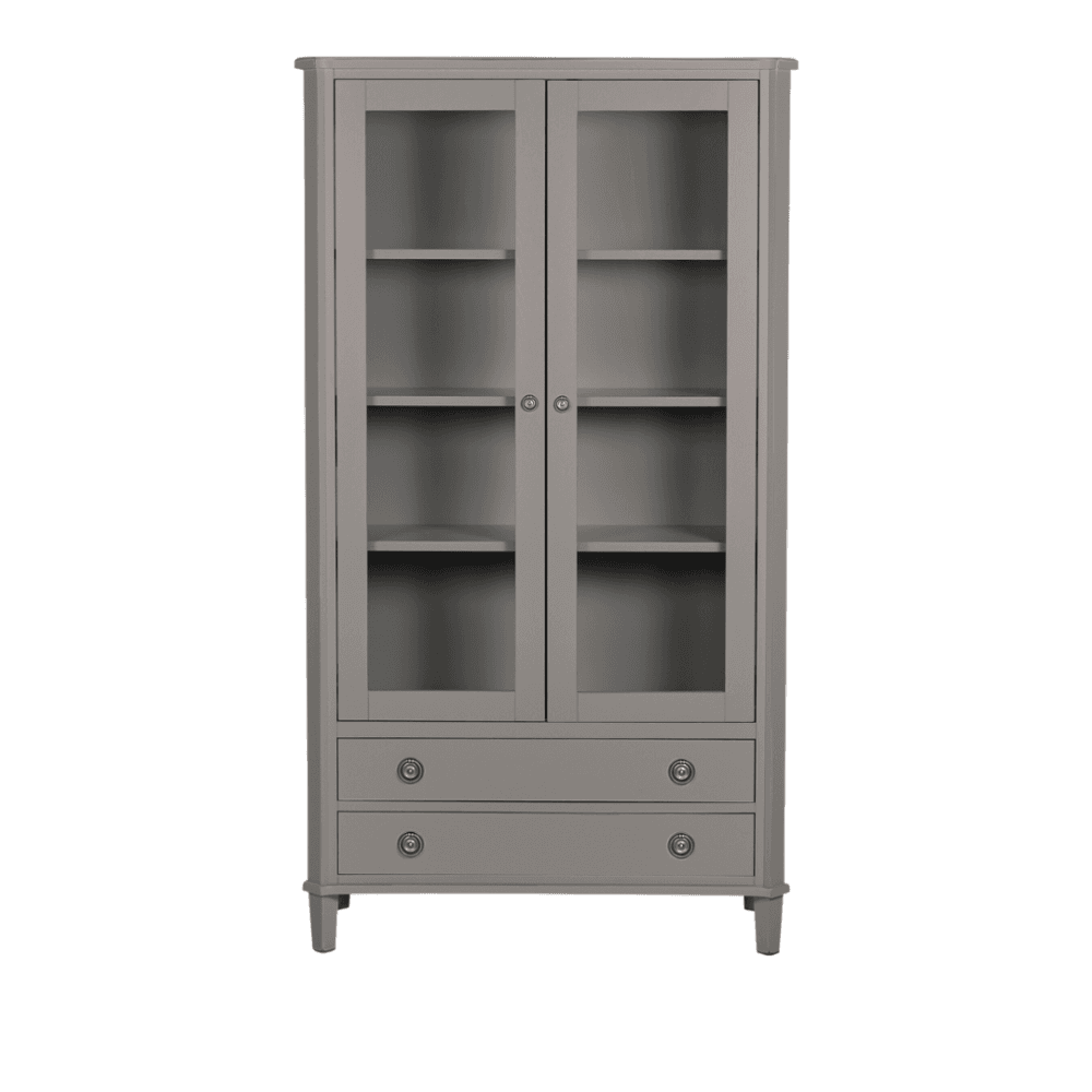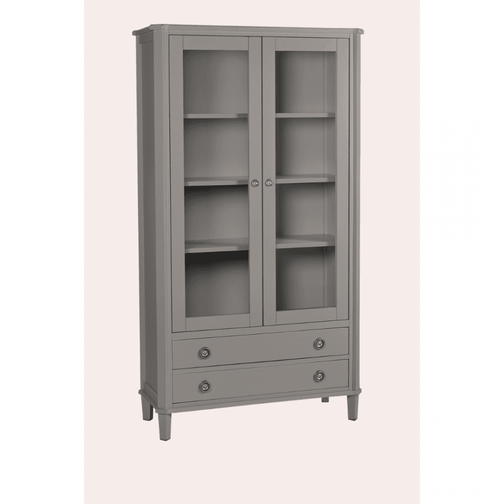Henshaw Grey Solid Wood 2 Glass Doors 2 Drawer Display Unit