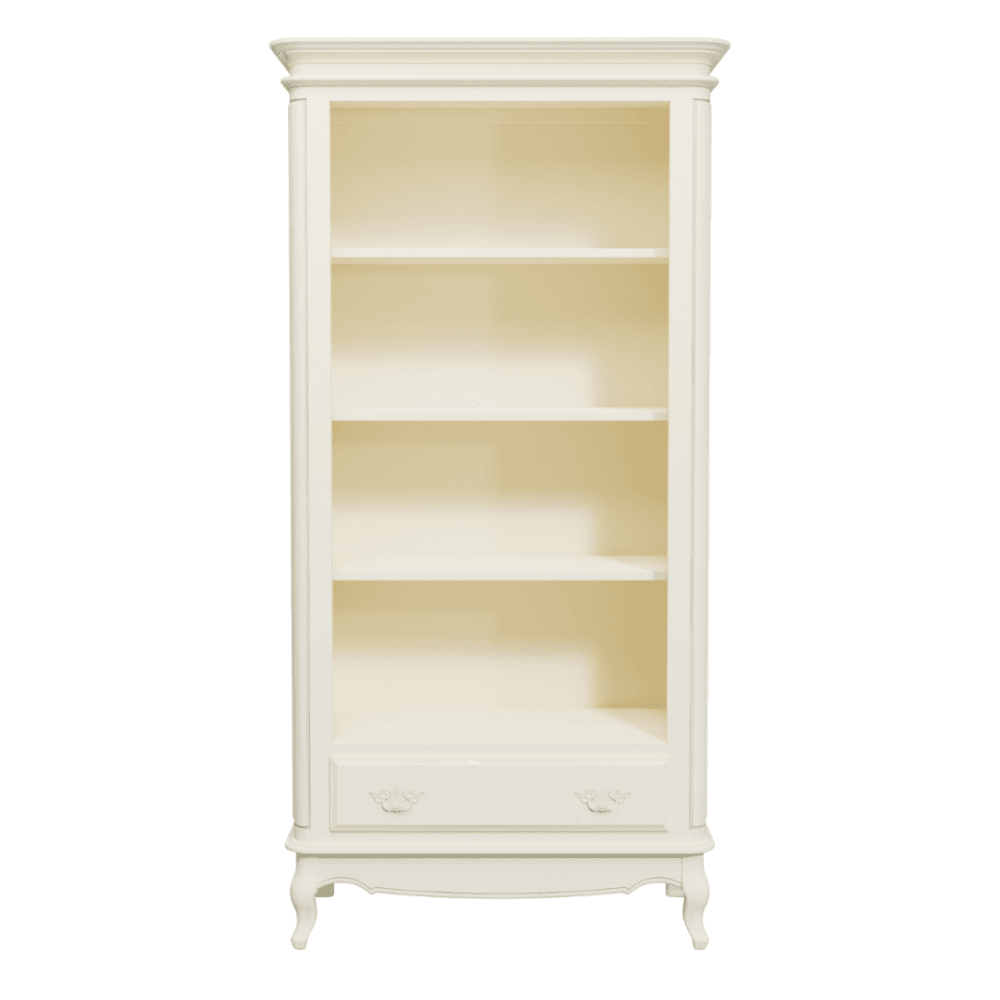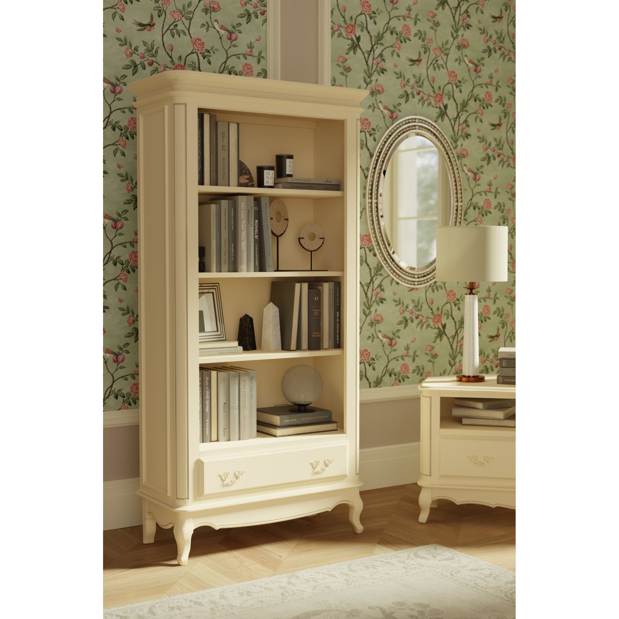 A stunning focal point of any living or dining space, the Laura Ashley Provencale 1 Drawer Bookcase marries practicality and elegance. One fixed and two adjustable shelves are housed within the panelled body and a full width drawer is dressed with authentic florid handles particular to the style. The typical curved corners of the piece are further complemented by its tall and ornate cornice. All surfaces are finished with a durable yet unassuming paint and a delicately applied patina to selected edges and profiles. Only the legs need to be attached to begin enjoying this piece; full assembly is not required.