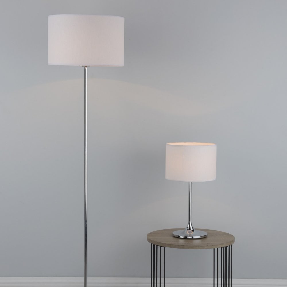 38cm Cotton Drum Shade in Ivory with a white PVC lining, as featured on our DEL4950 Floor Lamp. The shade has a luxurious, deep woven texture to the fabric. Suitable for ES/E27 fittings; comes with a reducer ring to fit SES/B22 fittings.
