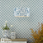 Taking inspiration directly from the blue-sprigged wall paper found in the drawing room of Down House, the former home of the great Charles Darwin, the Down House 16-inch Lamp Shade features an exterior in an Arts & Crafts style blue-sprigged pattern.