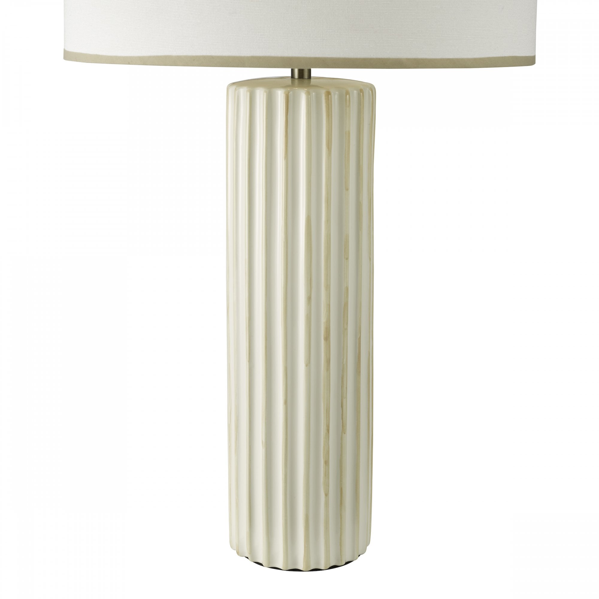 The Idella shade in white linen with cashmere trim, as featured on our Idella table lamp. Its neutral palette and tailored finish bring timeless elegance to living rooms, bedrooms, and hallways.
