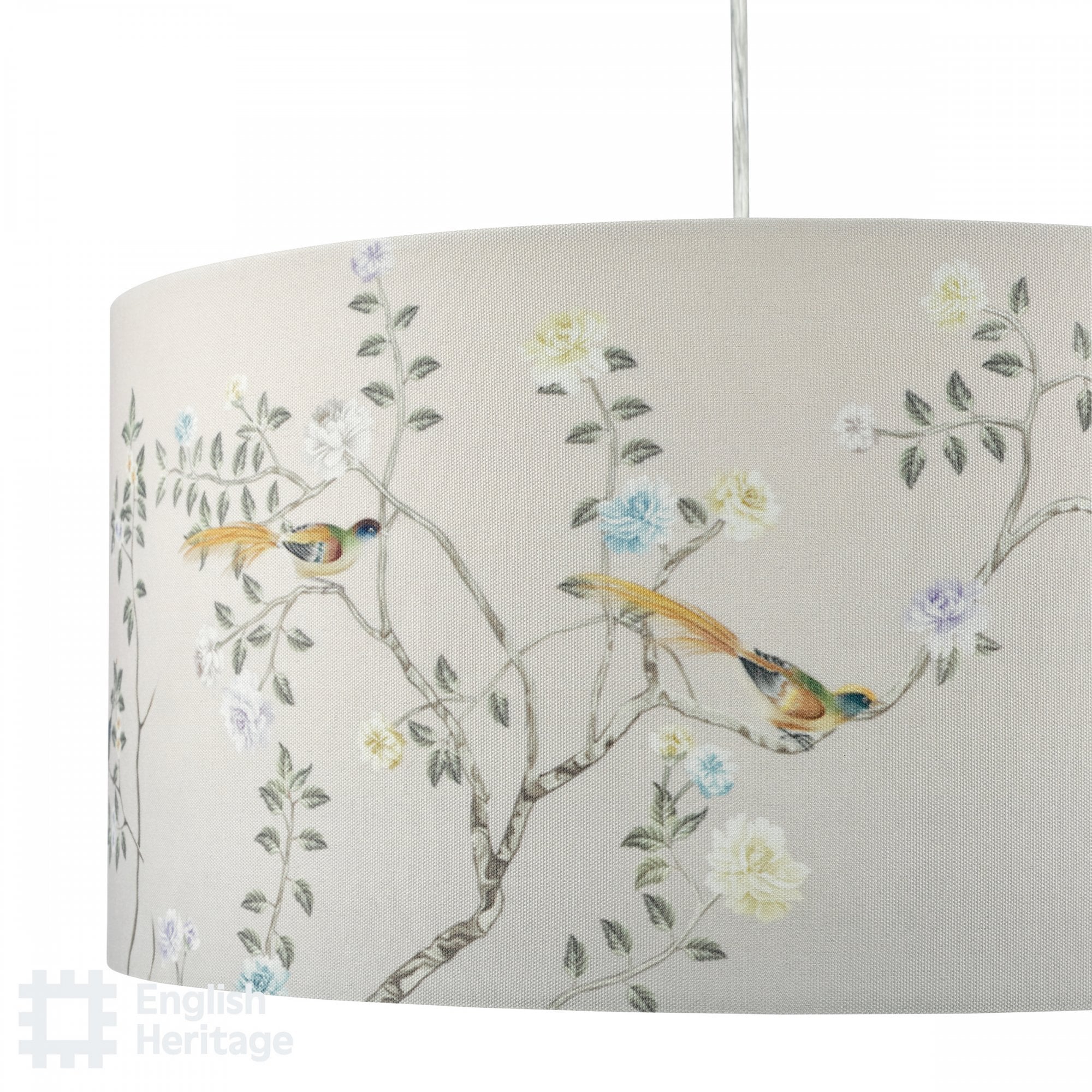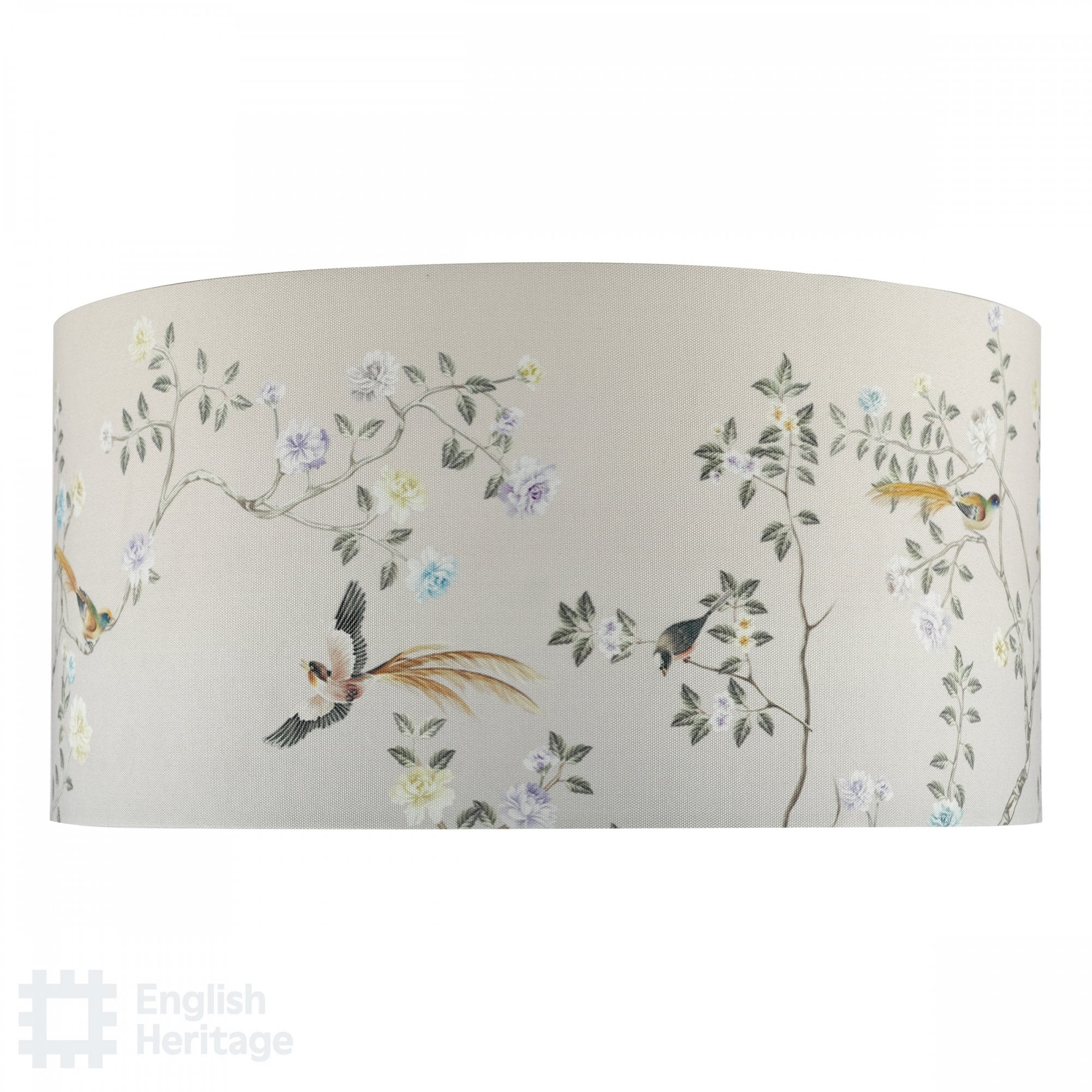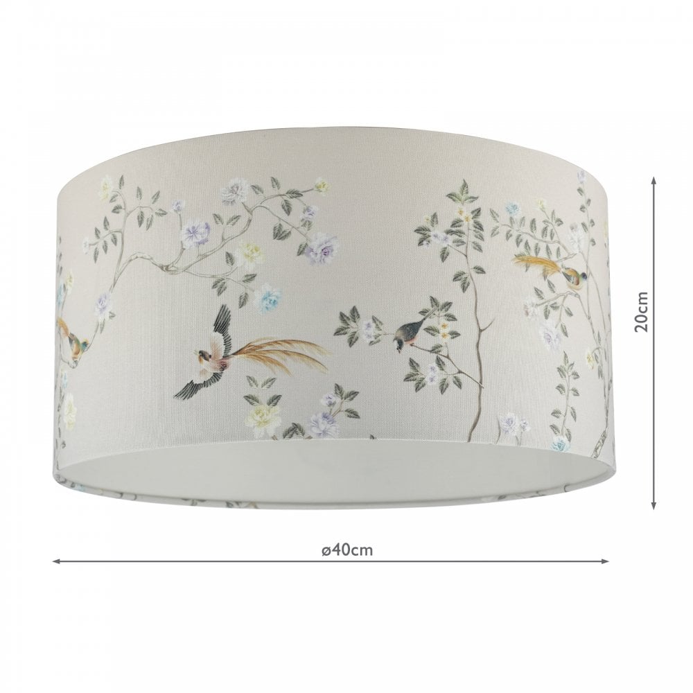 Taking inspiration directly from the Chinoiserie wallpaper in Marble Hill's dining room, the Marble Hill 16-inch Lamp Shade features a detailed Chinoiserie pattern on a sand-coloured background with a complementing fabric lining.
