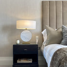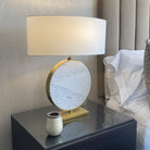 The base of this stunning lamp features eye-catching white marble, accentuated by natural grey veins that run throughout, offering a touch of luxury and sophistication. Surrounded by a sleek metal finish, the design is beautifully completed with an elegant opal shade. This lamp is the perfect addition to any space, bringing a blend of refined style and soft, inviting lighting to enhance your décor, whether in a living room, bedroom, or office.