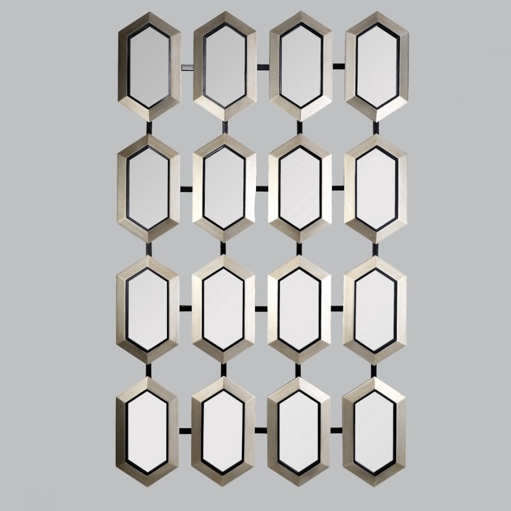 The geometric design of the Callan Mirror makes it perfect for generating more light in a room, and making a space seem bigger than it is. The champagne finish makes it perfect for use in a bedroom, hallway or living area, making it stylish and practical.