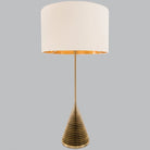This Elegance Table Lamp offers a contemporary look to any space. This lamp adds a unique focal point due to the stunning antique brass discs of the base which is finished off with a gold lined shade. Place either in a living room, hallway or either side of a bed for full impact. Also available in a smaller version.