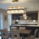 Make a statement in any dining space with the 98.5cm Long Pendant Light. This striking fixture is expertly designed to draw attention and create an inviting atmosphere. Perfectly sized to hang over dining tables, it adds a dramatic flair while providing ample illumination for your gatherings. Its eye-catching design complements a variety of interior styles, making it a versatile choice for both modern and traditional spaces. Illuminate your dining experience with this stunning pendant light featuring beautiful tubular glass rods and a gorgeous antique brass finish.