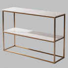 The Yarrow Bookcase is a stunning example of modern design, crafted with a luxurious warm gold metal finish and a striking white marble top. Its sharp, straight lines and brushed gold accents create a sleek and elegant silhouette, making it a perfect focal point for any modern or contemporary setting.
