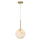 A solid block of alabaster stone has been cored and turned into a sphere, the naturally occurring deposits of iron oxides in the soft calcite stone leave trails of clouding and veining. As a result, each individual shade is a unique beauty to behold.