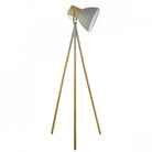 The Scandi-inspired Adna floor lamp features an adjustable, matt grey shade with a tripod base with natural wood details.