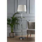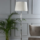 The Laura Ashley Blake floor lamp is a beautifully crafted clear cut crystal floor standing light with a thick glass base from which soars a slender stem encased in four faceted crystal segments. This heavy lamp base will add contemporary glamour to your home.
